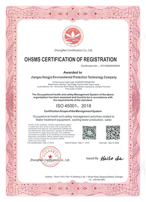 經過多年來的不懈努力,公司已經形成良好的管理和運作體系。獲得了<江蘇質量誠信3a品牌企業>榮譽證書 并已通過ISO9001質理管理體系認證、ISO1400環境管理體系標準及 ISO45001職業健康管理體系標準。